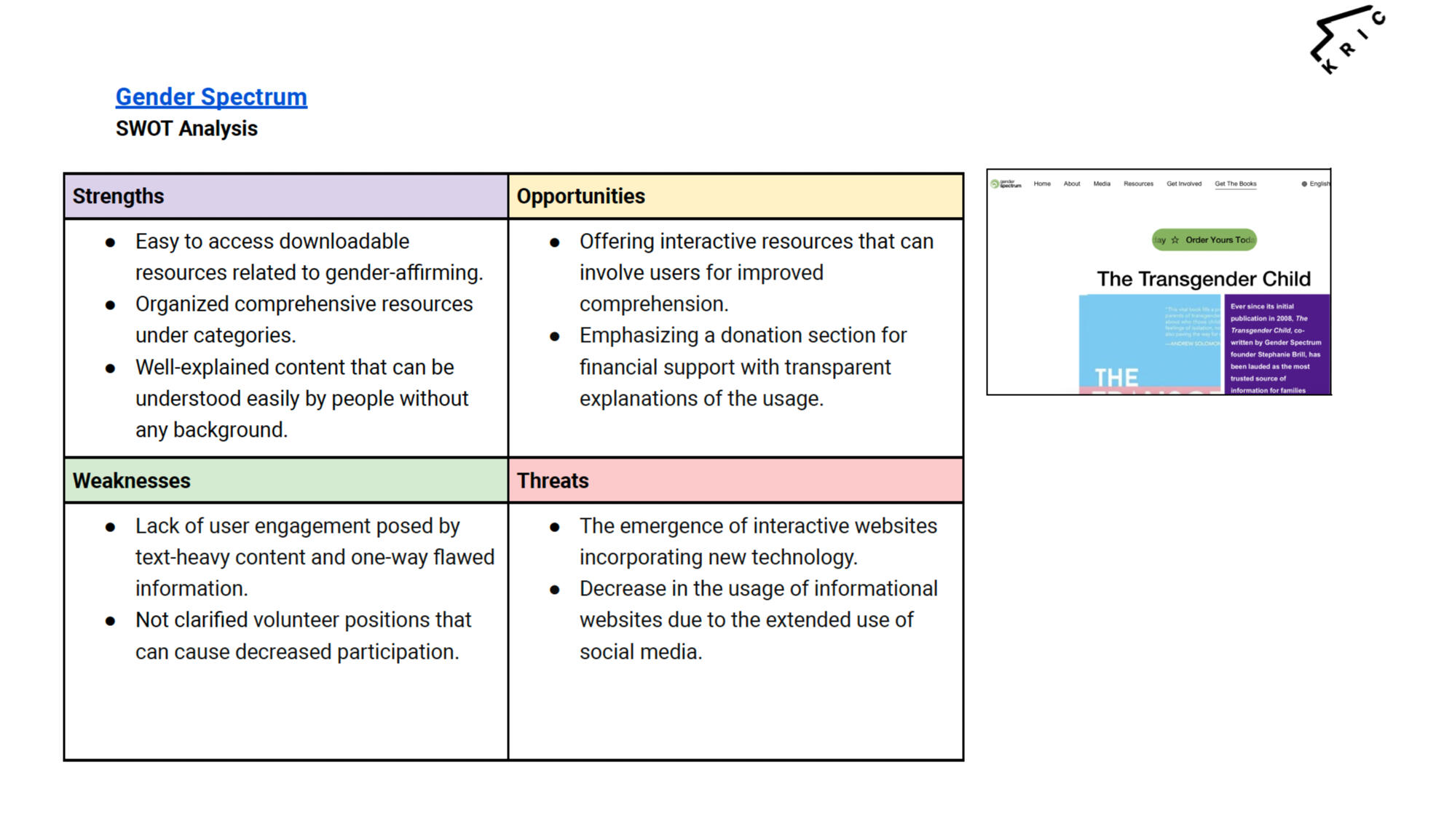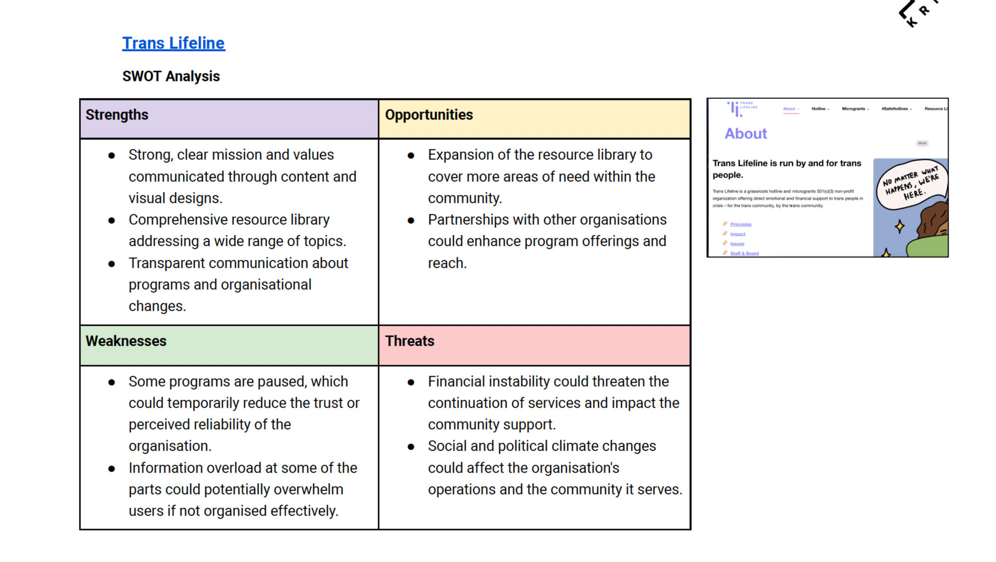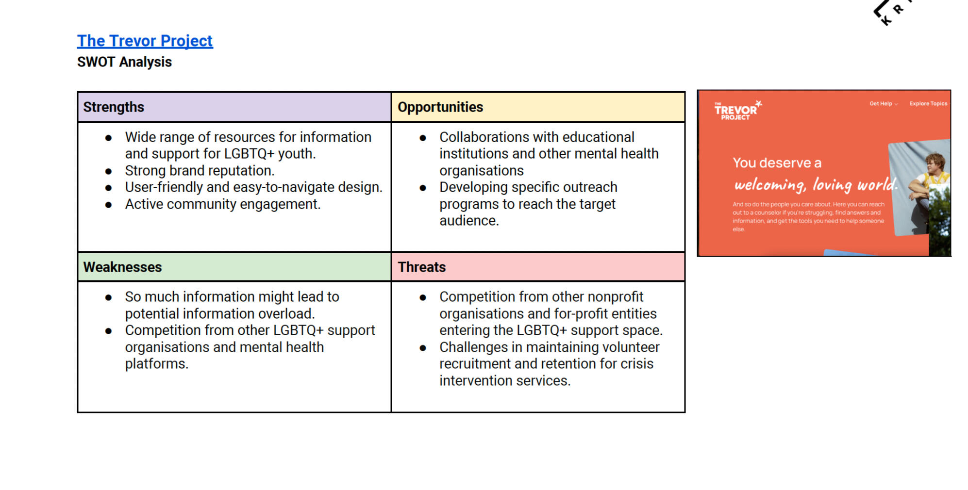Our team looked at other online projects that help transgender youth. We made a SWOT analysis for these projects.