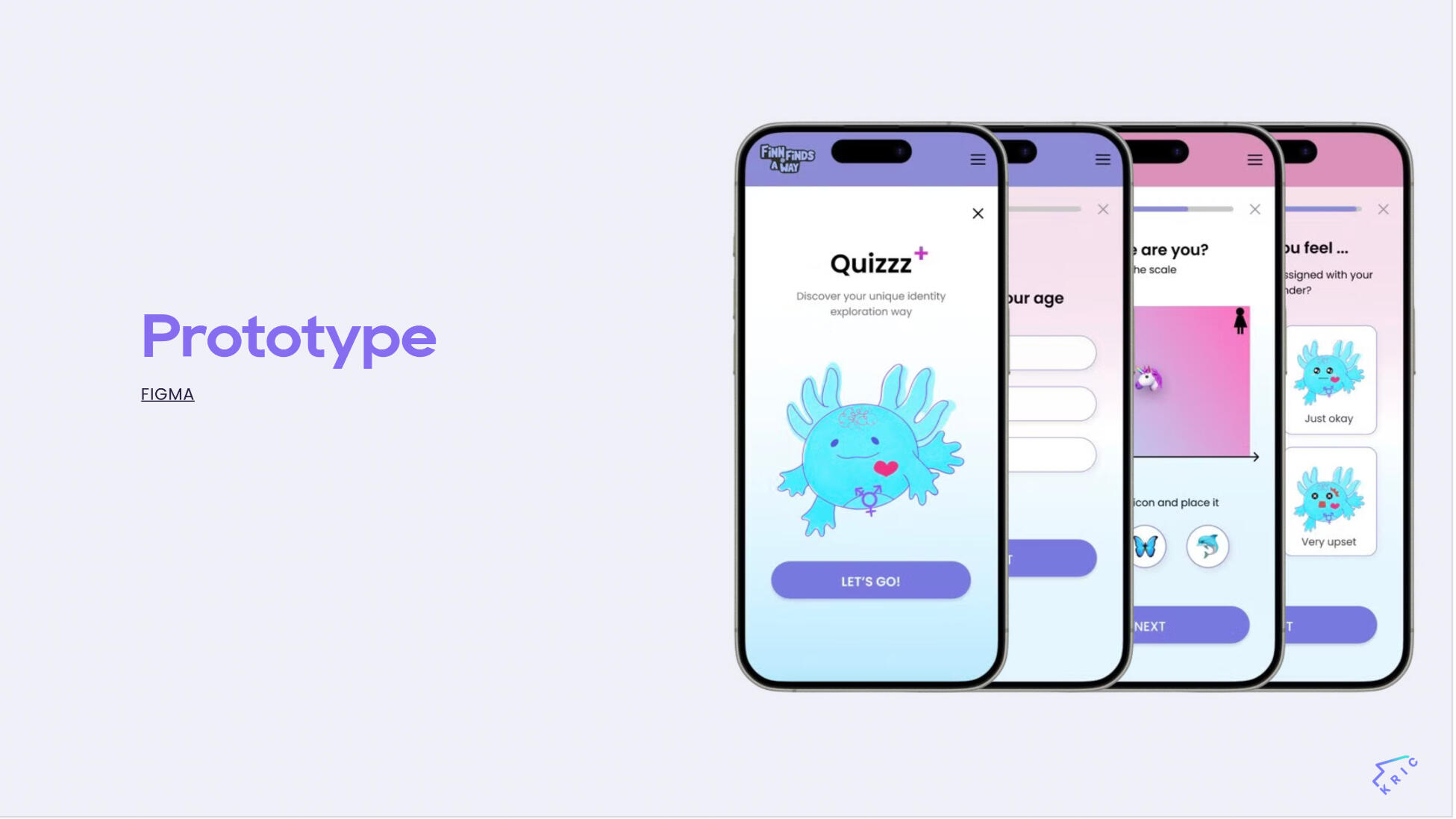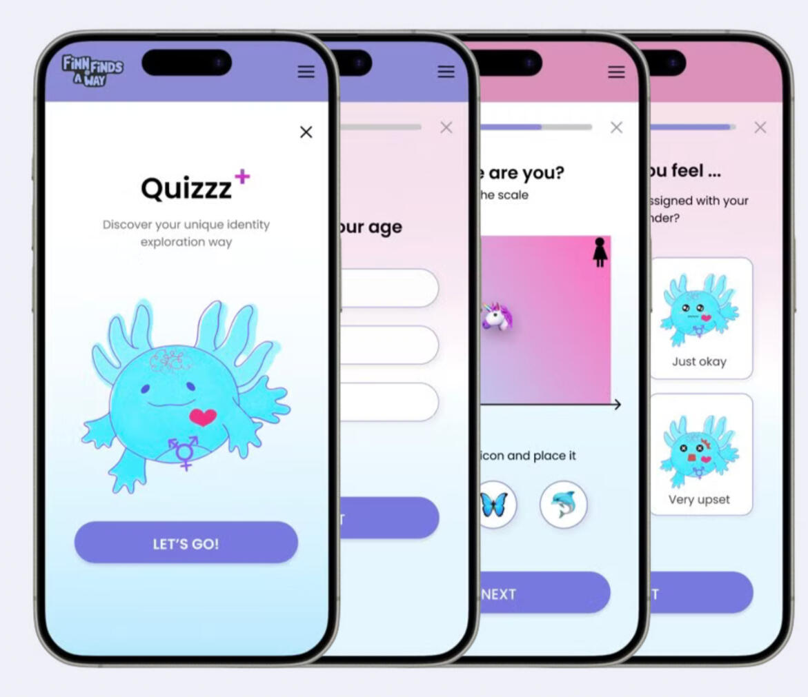 Our team had a great idea to help transgender youth find the right resources safely. We created a quiz that helps them see where they are on their self-identification journey and what resources might help them now. The whole quiz is delivered in a fun, game-like way.