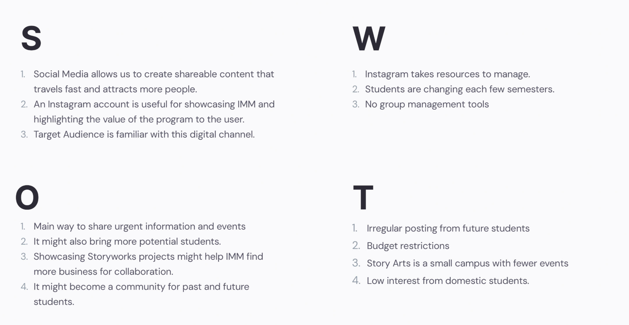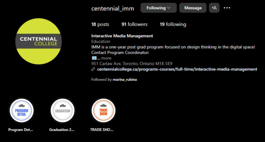 As students of the Interactive Media Management (IMM) program at Centennial College, we recognized the need for a stronger digital presence to attract future students and showcase the program's offerings. This project aims to create an engaging Instagram strategy for the IMM program.