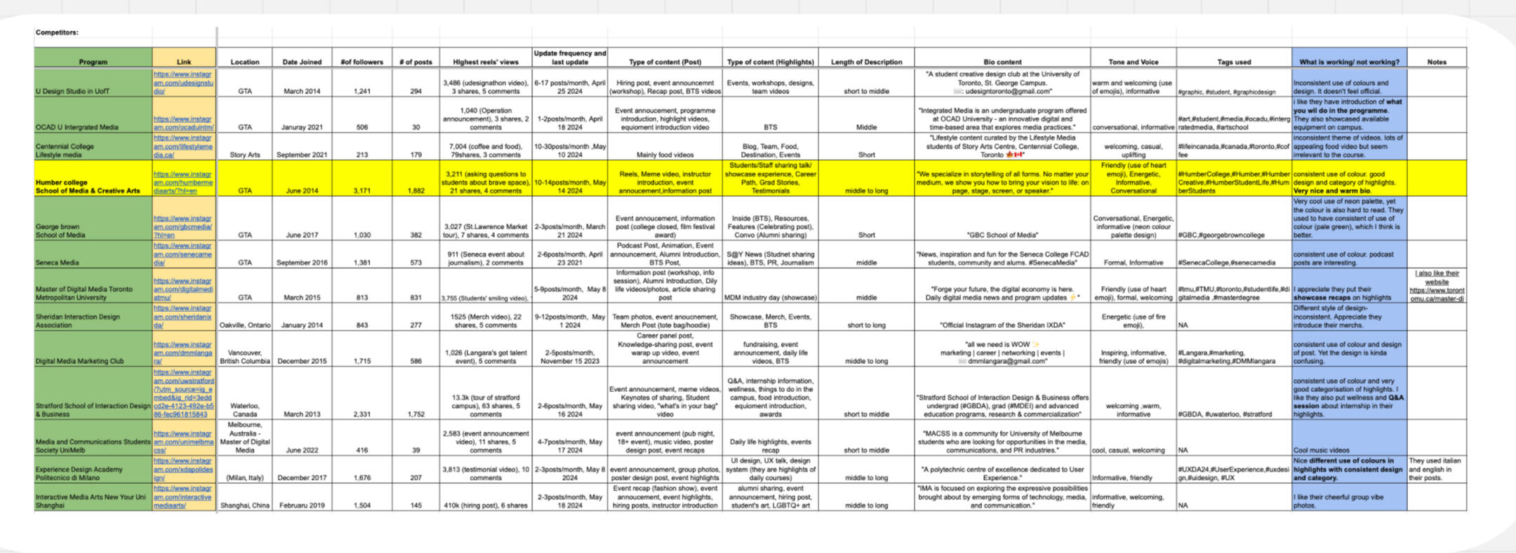 My first task was to do the competitive analysis and audit of similar to our program instagram pages.