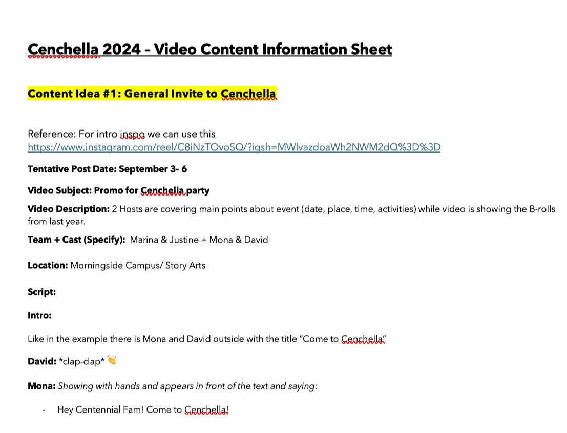 Create and execute a social media promotional strategy to attract students and sell tickets for the Cenchella welcome party, with a target goal of 400 ticket sales. The strategy focused on creating engaging video content for Instagram and TikTok to generate buzz and drive ticket sales.